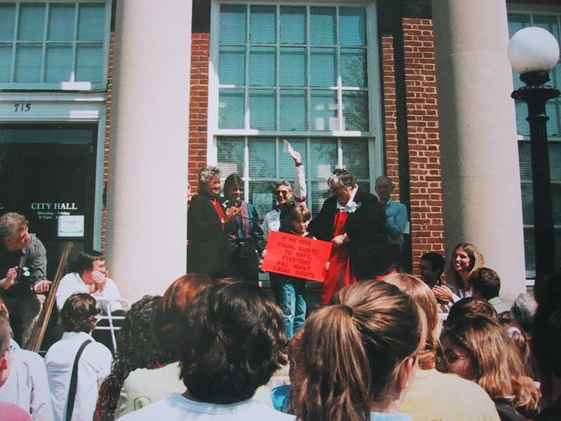 "A young boy holding a sign for equal rights. It's amazing he is being taught tolerance so young." - Amanda