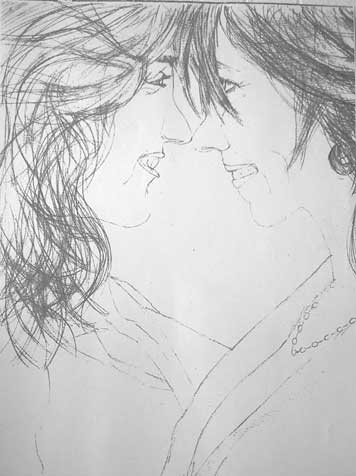 "This is a copy of a pencil drawing of Melissa Etheridge and her new wife Tammy Michaels." - Deborah