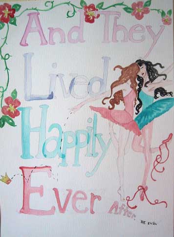 This peice shows the universal love bewteen two non-traditionsl lovers. Long has the Ballerina Princess been the epitome of grace, beauty, and ultimate female standards. In the end, the princess always ends up with a prince, I wanted to change that, I wanted thsese characters to become even mote universal.
