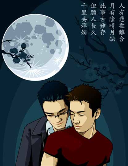 Description of Submission: "Untitled" - Notice the choice of color, uncover the symbols, and reflect on the poem. Here is a translation: Men have sorrow and joy; they part or meet again; The moon is bright or dim and she may wax or wane. There has been nothing perfect since the olden days. So let us wish that man Will live long as he can! Through miles apart, we'll share the beauty she displays.