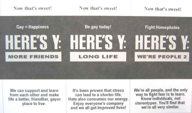 "Gay Chocolate" - An original way to promote the GSA club - a definite attraction. " - Jimmy