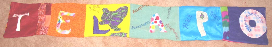 | Description of Submission: "Rainbow scarf with different words that the GLBT community hpes to obtain from society. Tolerance, Empathy, Love, Acceptance, Peace and Openmindedness" Why Karen and Melody Liked It: We felt the scarf was very unique and different from what was received before. It was beautiful in colors. It had a lot of meaning behind each of the letters. |