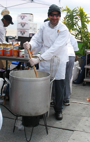 | One of the contestants cooking their clam chowder. |