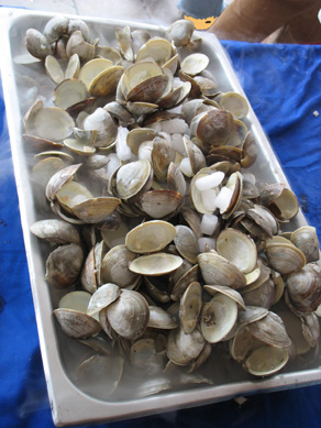 | All the clam shells shucked. |
