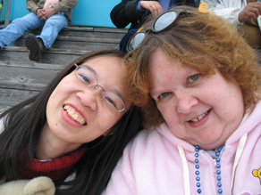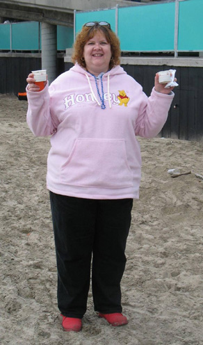 | Here we are at Santa Cruz Beach Boardwalk ready for the Clam Choweder Festival! |