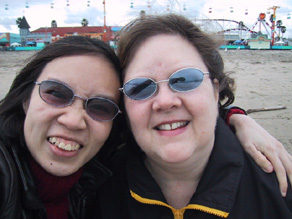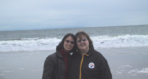 | Karen and Melody at the end of a fun filled day. The ocean in the background provided the perfect setting for the Clam Chowder Festival. Till next year! |