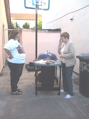 | Karen and Mom watch over the grill as all the good food cooks. Who's the chef and the sous-chef? I'll never tell! |