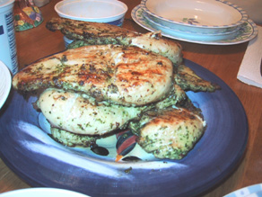 | A plate full of grilled chicken breasts. Now that's Good Eats! |