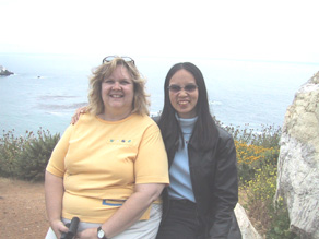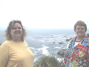 | Karen and Mom with the ocean as a back drop. Isn't this a lovely picture? Of course I am talking about the ocean! |