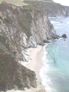 | The drive down Highway 1 hugs the coastline. You can stop just about anywhere and look down the cliffs to the beautiful blue ocean below. Most of the beaches are clean as they aren't accessible. It's a one way trip! |