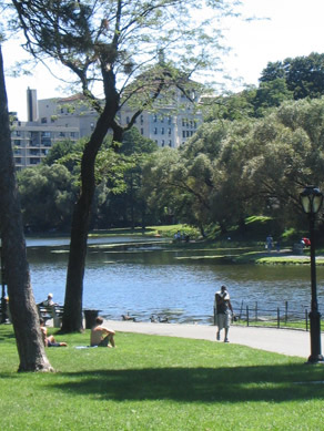 | Look at how gorgeous Central Park is. It had a nice lake and nice well kept lawns for everyone to lie around on. |