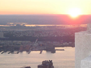 | Here is a view from the Empire State building of the sun starting to set. |