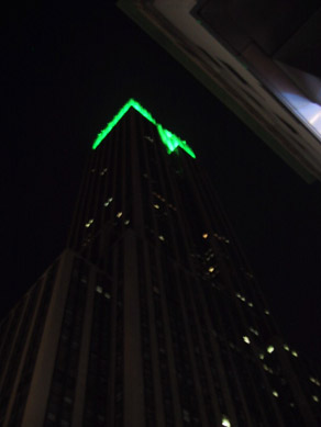 | Here is the Empire State Building from outside. The top was glowing green. |