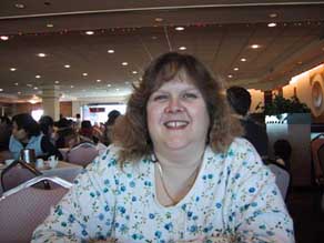 | Lunch at the Dim Sum restuarant. Melody hates all the people, but she knows how much I like the food, so she indulges me. Don't I look happy? |