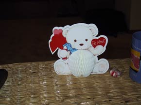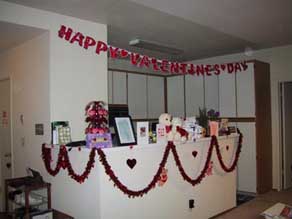 | We made her apartment look festive with all the decorations we put up. Her apartment was in Valentine's Day mode. |